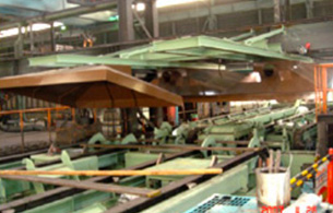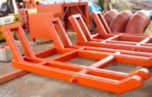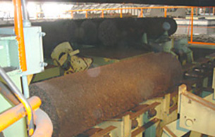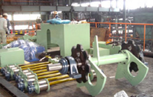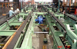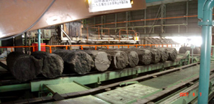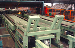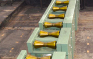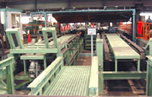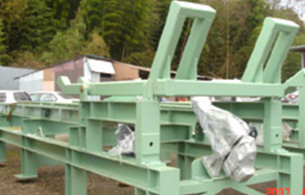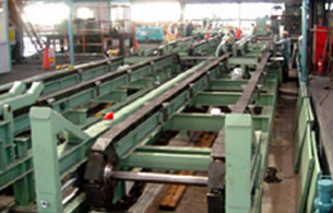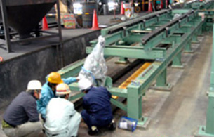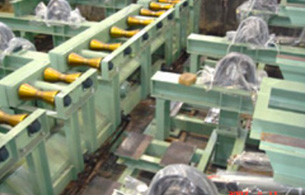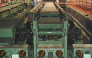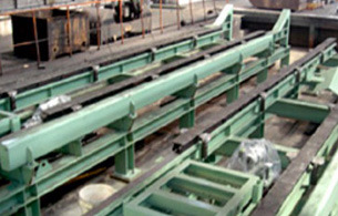 「電極棒搬送装置」は、各種電極棒をコンベア装置により搬送する設備です。